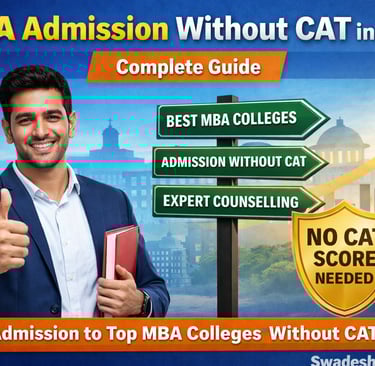 Learn how to secure MBA admission in 2026 without CAT. Explore top colleges, direct admission options, scholarships, and expert guidance from Swadeshi-Shiksha.