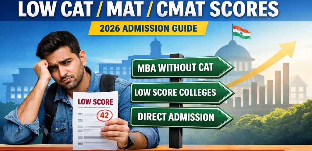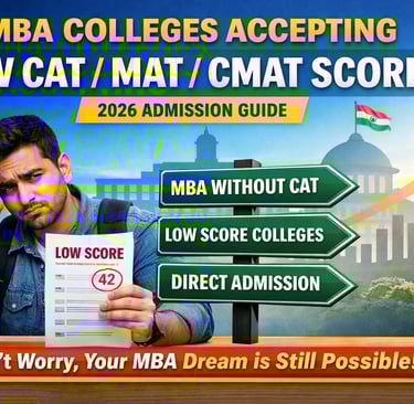 Low CAT, MAT or CMAT score? Explore MBA colleges in India accepting low scores and get expert counselling for 2026 admissions.